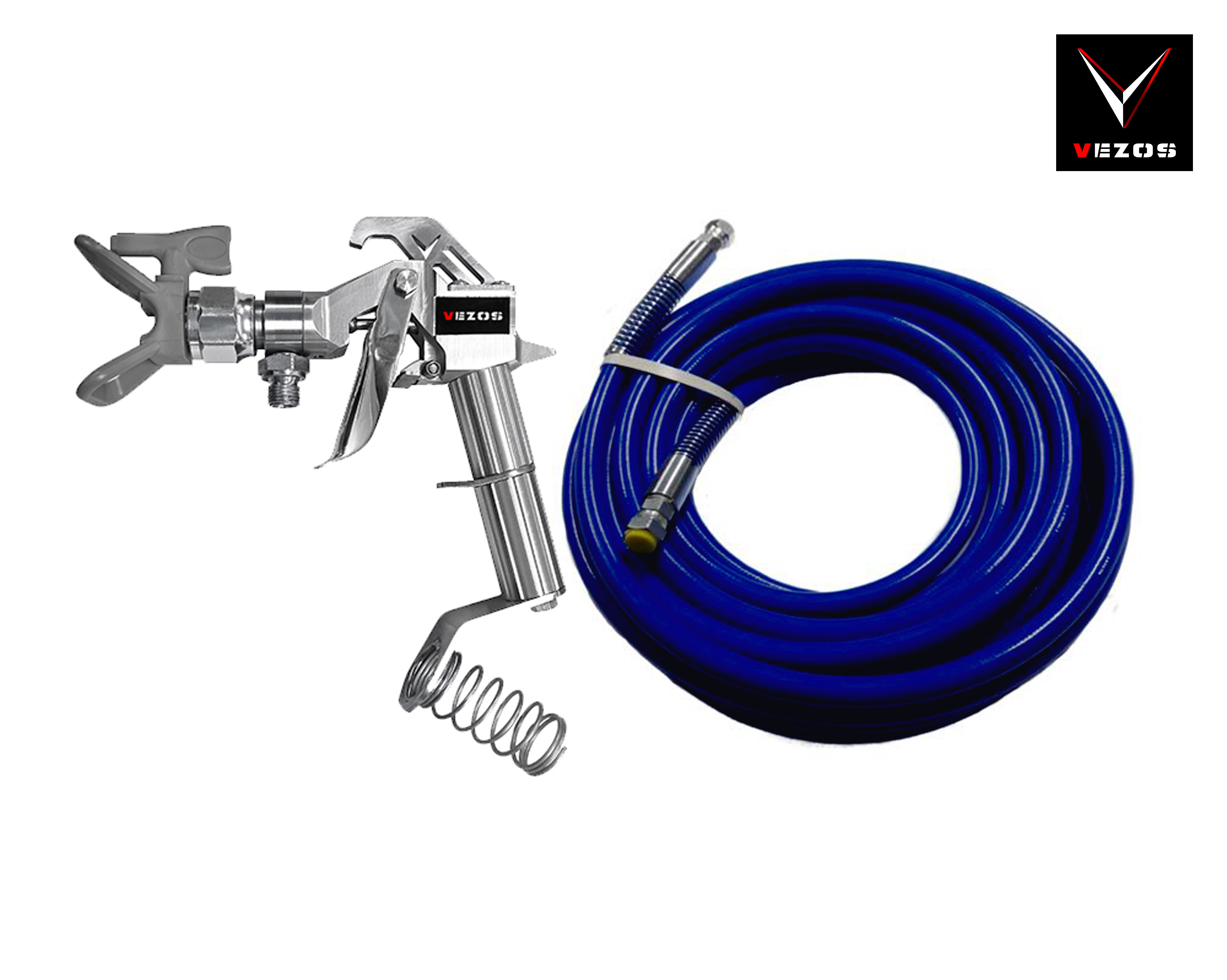 Airless paint hose 1/4” 15 meters and VEZOS V5 spray gun with filter, complete kit. Working pressure 345 bar, for all VEZOS airless sprays and line stripers.